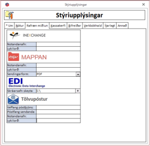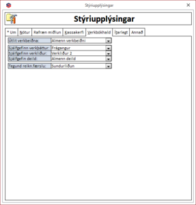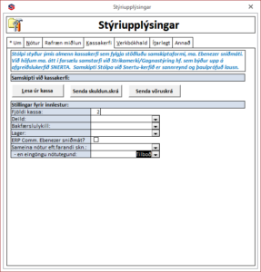 - Sendingamáti nótna: Notandi getur valið hvort kerfið sendir sjálfkrafa reikninga sem: